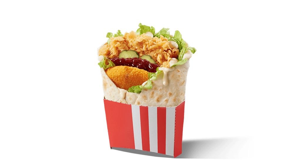 Krõbeda kanafilee, cheddari juust, marineeritud kurk, värskendav salati, tuline jalapeno koos burgrikastmega. Selle isuäratava maitsekoosluse leiad kergelt röstitud tortilla seest. Vali vürtsikas Zingeri või Fillet versioon originaalsest retseptist. Jalapeno Wrapstar, suured friikartulid ja suur 0,5 l jook