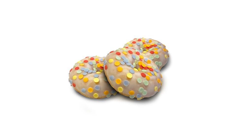 Valikus on: valges glasuuris, karamelli- või maasikatäidisega sõõrikud.