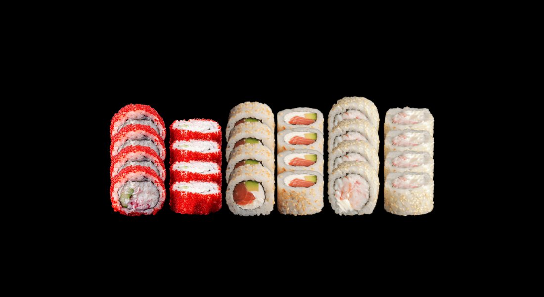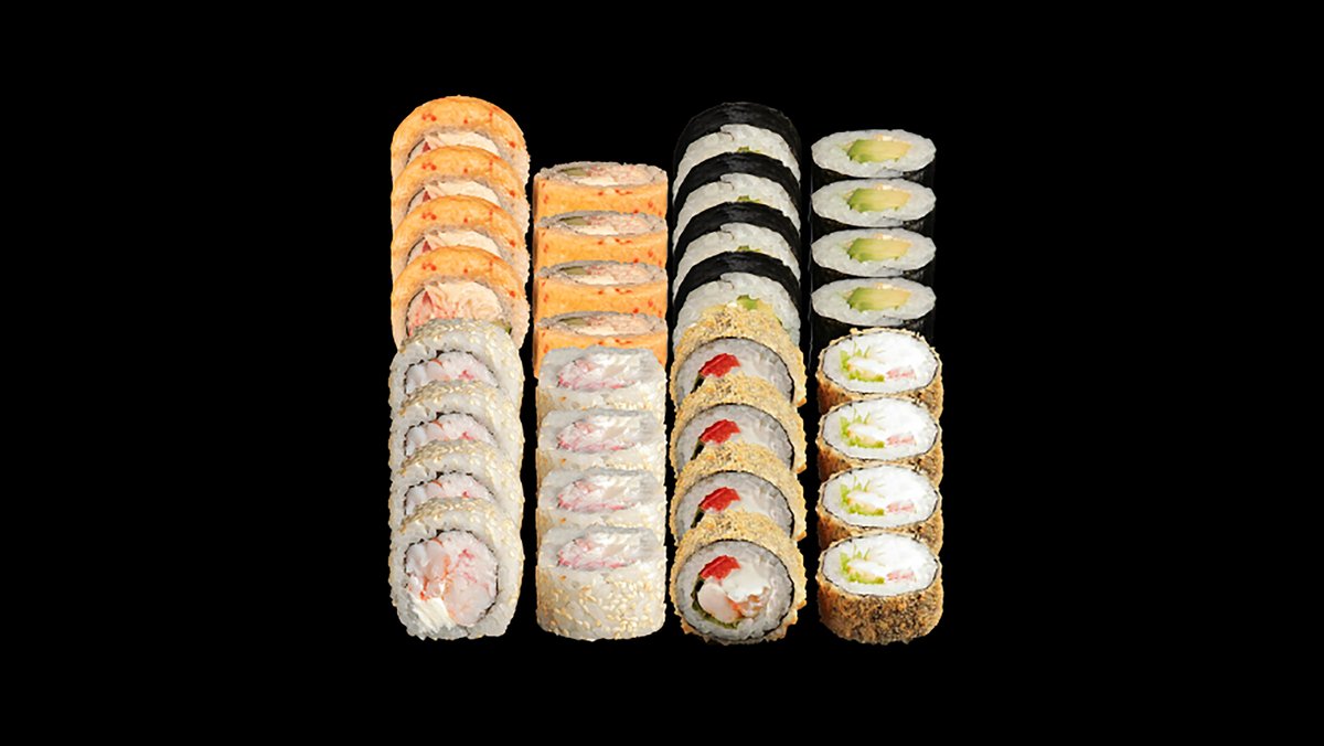 Krõbe kombo 24 tk: Krõmpsuva kana tempura 8 tk + Hiidkreveti tempura 8 tk + Lumekrabi tempura 8 tk Krõmpsuva kana tempura 8 tk: krõmpsuv kana, kreemjuust, salat, tomat, yakiniku kaste + Hiidkreveti tempura 8 tk: hiidkrevett, Eesti juust, terav kaste, unagi kaste + Lumekrabi tempura 8 tk: kreemjuust, lumekrabi, lendkalamari, unagi kaste
