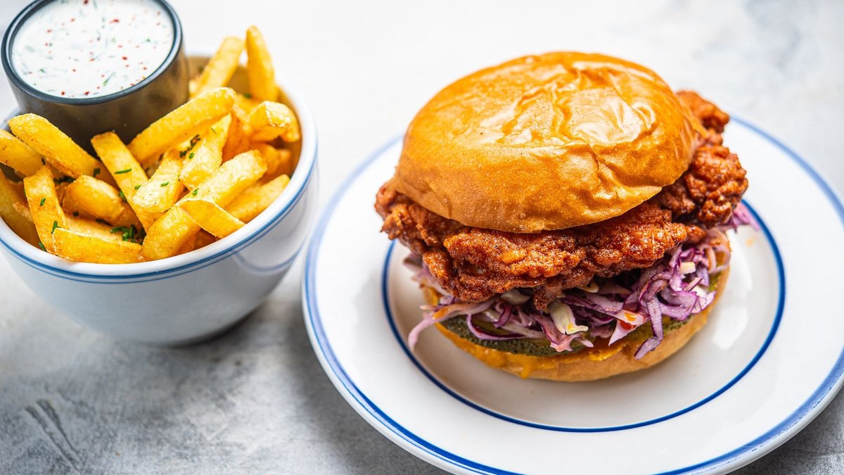 Nashville hot: Krõbekana, tšilliõli, coleslaw, majo, cheddar + friikartulid ja vabalt valitud kaste.