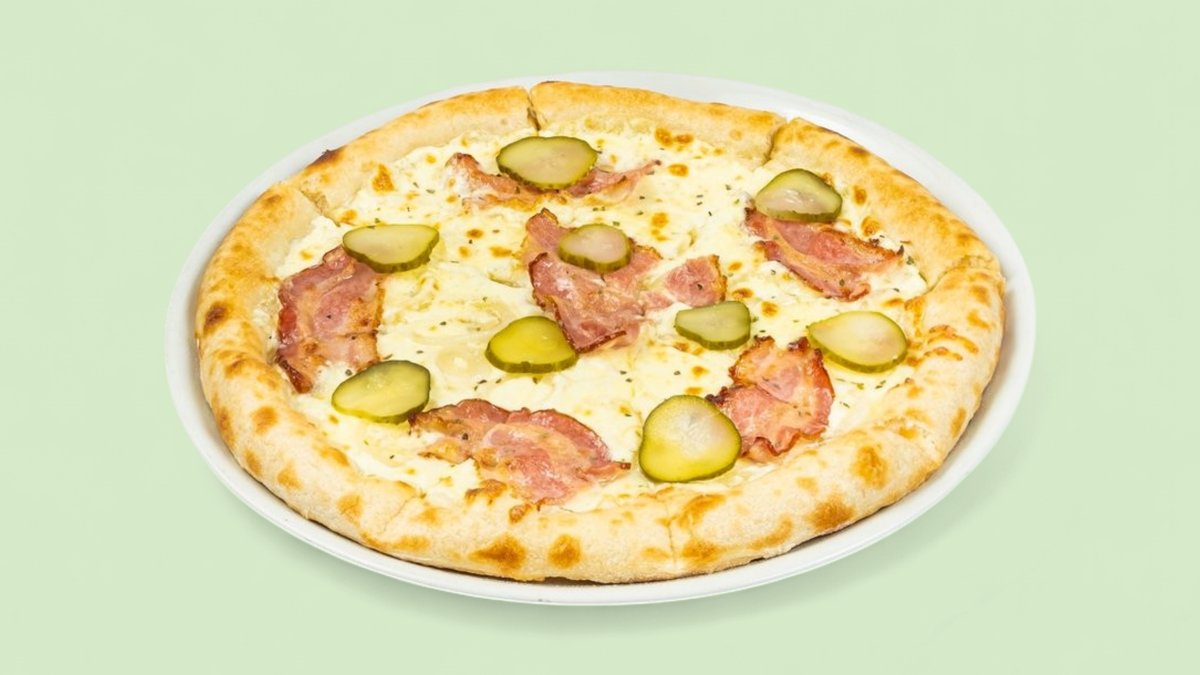 Hapukoor, juust, suitsupeekon, marineeritud sibul, hapukurk.