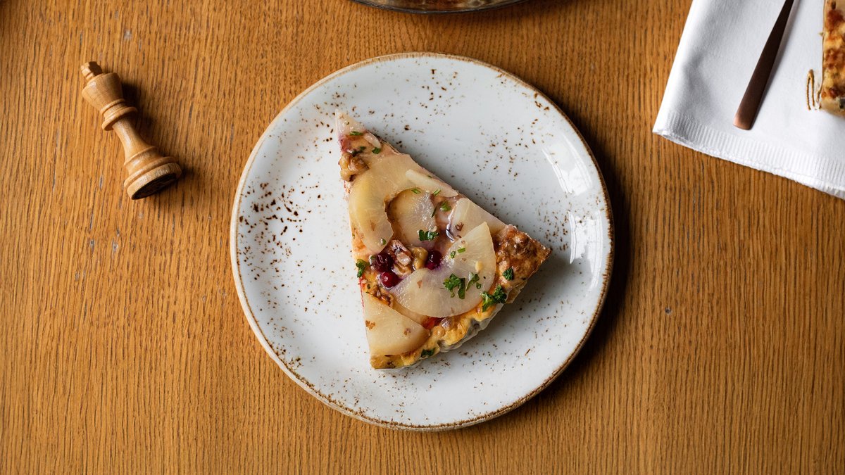 Ahjus küpsetatud mahlane pirukas Brie juustu, pirnide ja grillpaprikaga