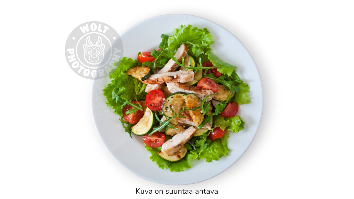 Herkullinen salaattisekoitus, joka sisältää maukkaita kananpalasia, rapeaa salaattia ja tuoreita vihanneksia.
