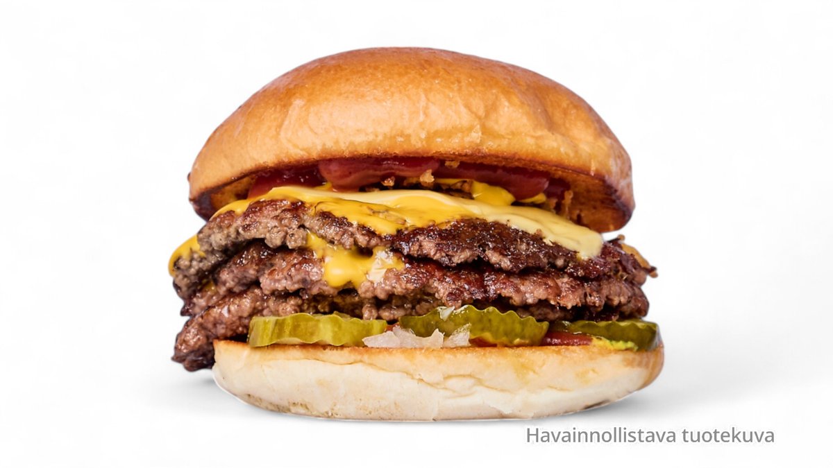 2 X 120 g pihvi, 2 x cheddarjuusto