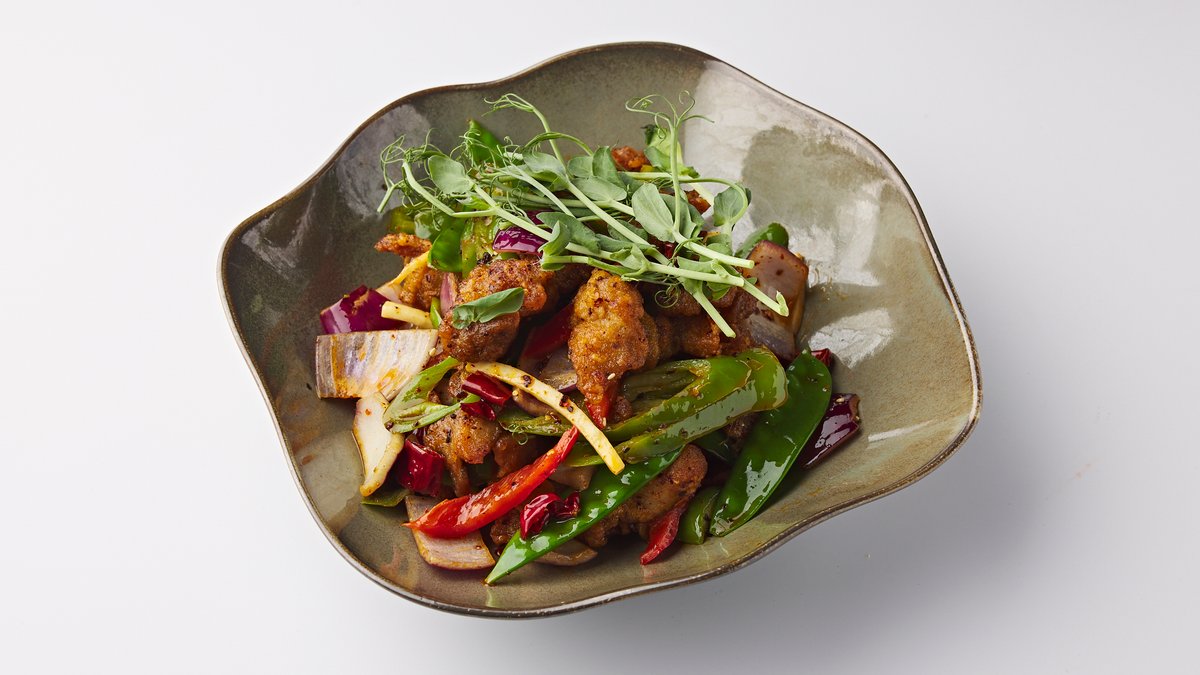 Battered chicken, red onion, chili pepper, celery with szechuan pepper and chili