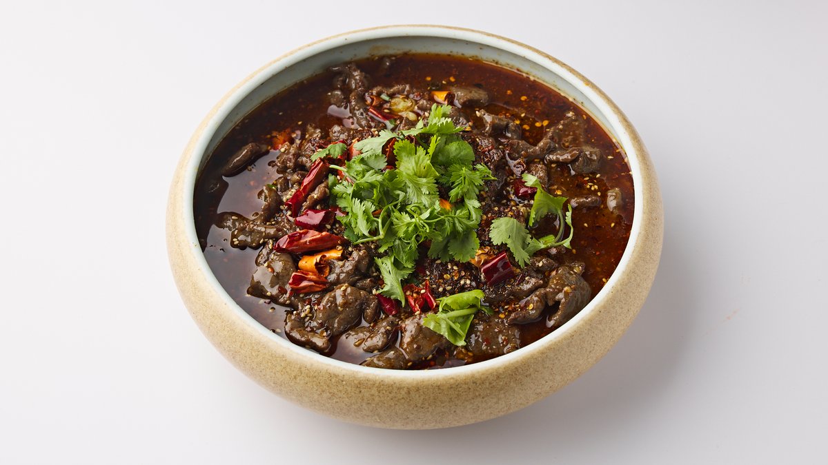 Sliced beef, tongue and omasum in szechuan style chili oil