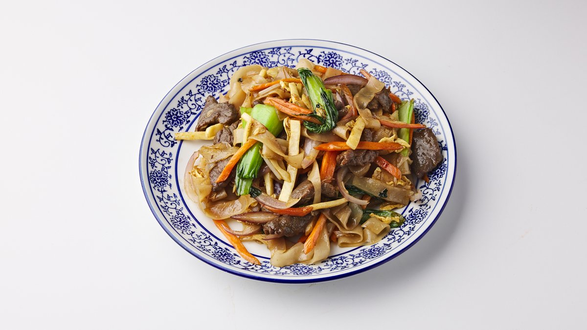 Stir-Fried Rice Noodle with Beef 干炒牛河 (G,L)