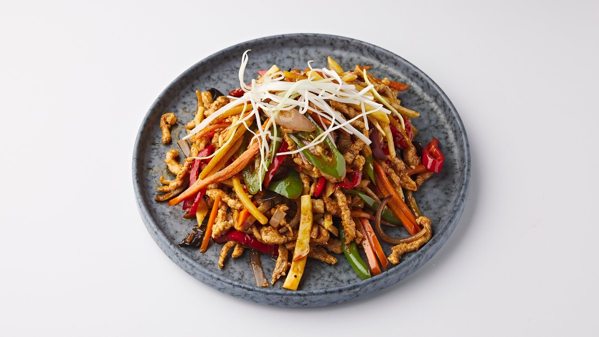 Shredded pork, bamboo shoot, carrot and wood ear with yuxiang chili sauce