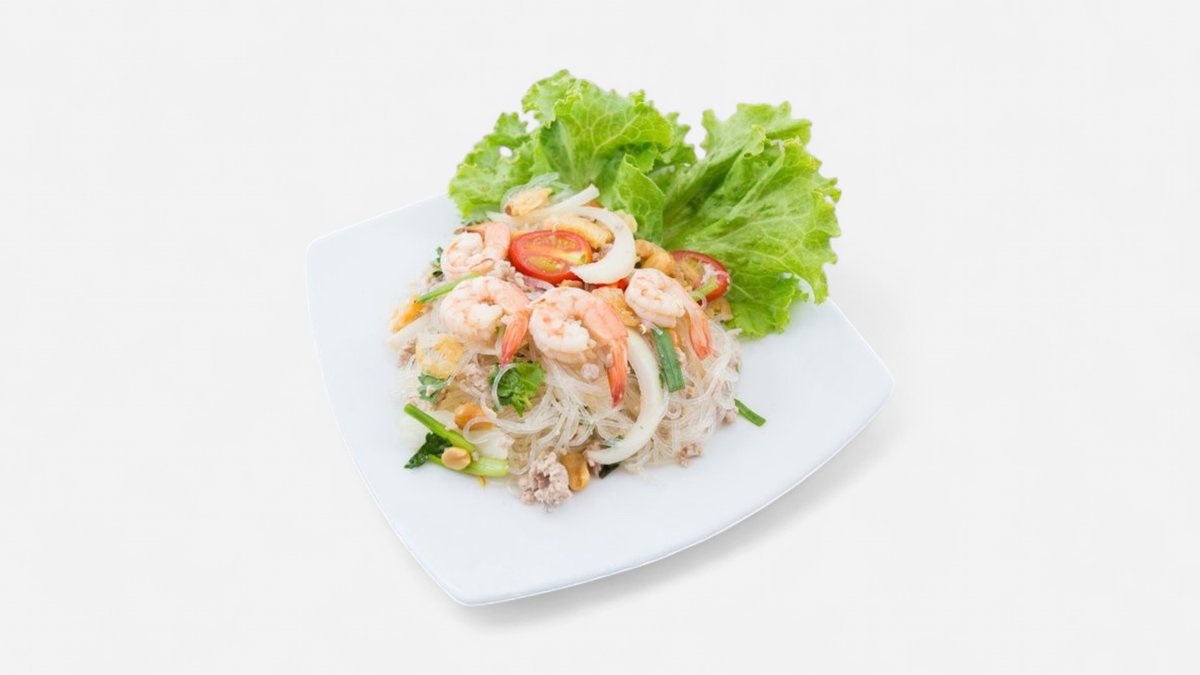 Tulinen lasinuudelisalaatti katkaravuilla