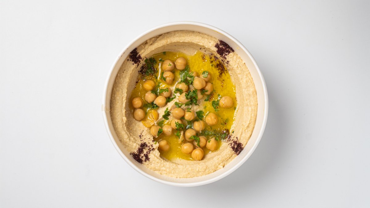 Silkkisen pehmeä, tuore kikherne-hummus. Valmistettu tahinista, sitruunasta ja valkosipulista.