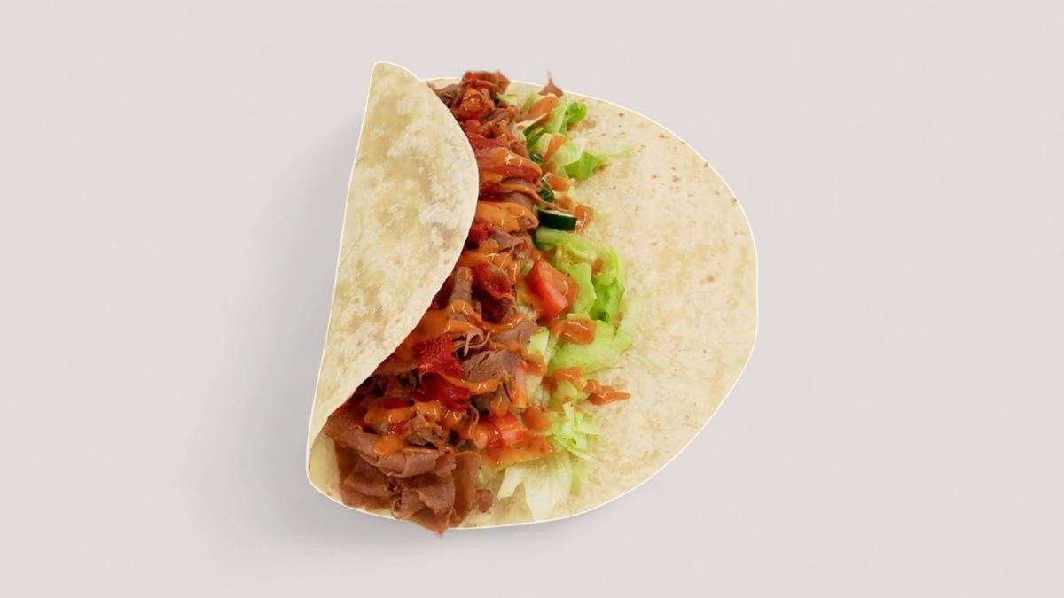 Tortillaa, Kebab naudanliha, tomaattia, kurkkua, jääsalaattia, sipulia, kebabkastike, salaattikastike