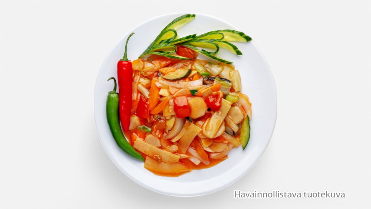 23. 炸蔬菜 Friteerattuja kasviksia hapanimeläkastikkeessa