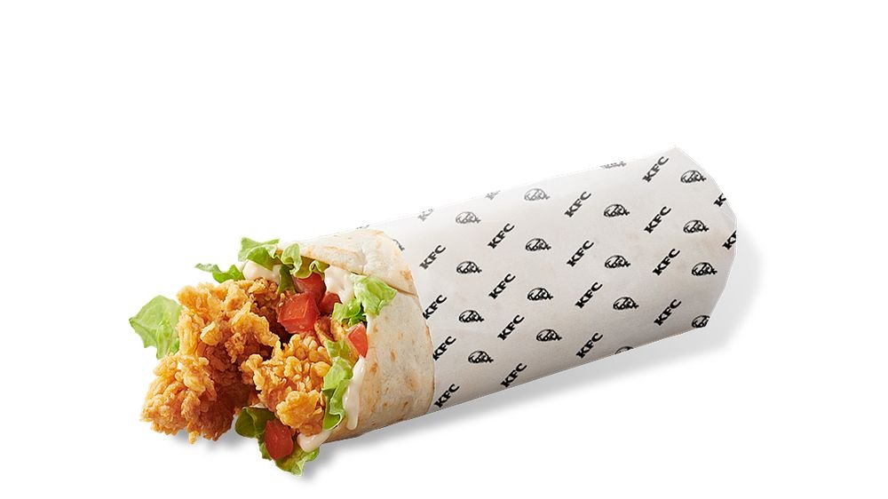 Veggie Twister -tortillassa on täytteenä Veggie strips, majoneesia, pilkottua tomaattia, sipulia, suolakurkkua sekä jäävuorisalaattia.