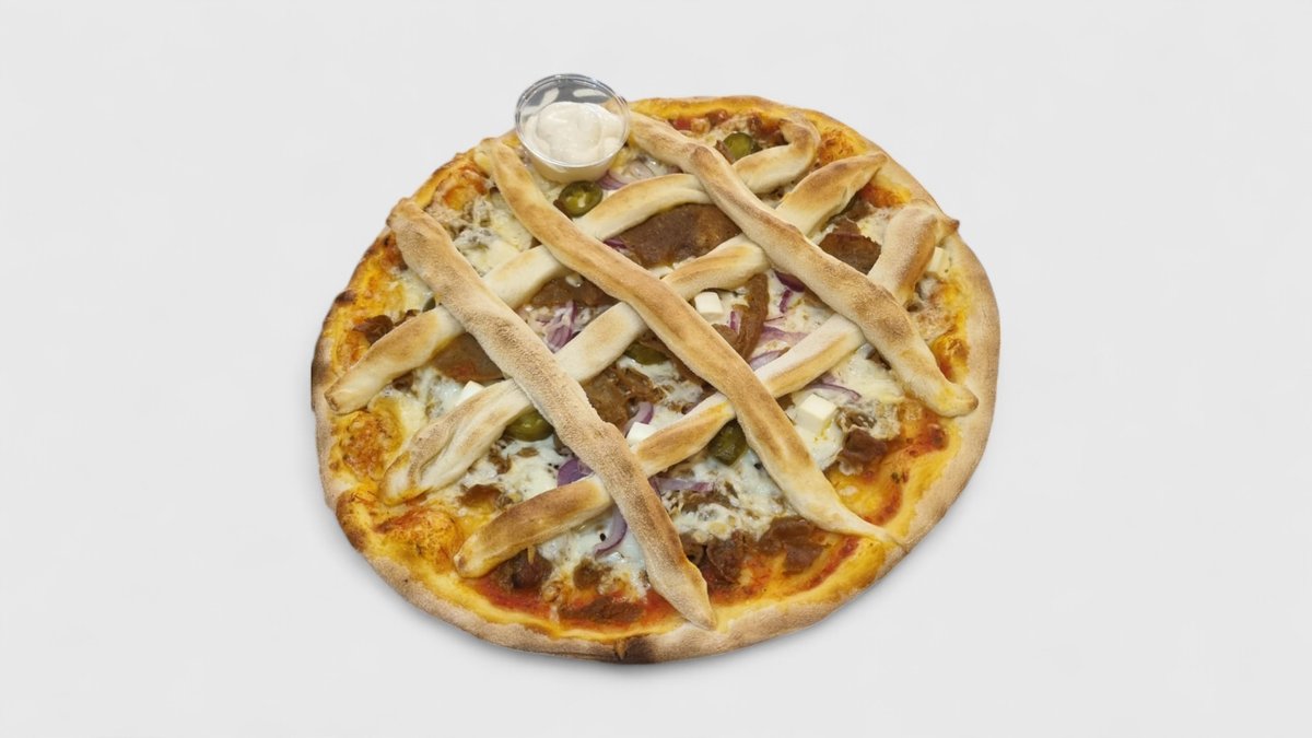 Kebabliha, punasipuli, tomaatti, vihreä chili, pizzajuusto