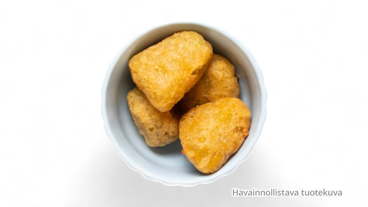 Rapeat kanannugetti ja dippinä kurkkumajoneesi