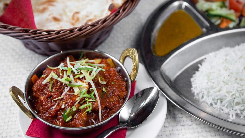 Kaikkiin annoksiin kuuluu keitetty basmatiriisi, raita ja naan-leipä (leivässä käytetään maito ja kananmuna.) Kanan alkuperämaa: Suomi. Lampaan alkuperämaa: Uusi-Seelanti/Australia.
