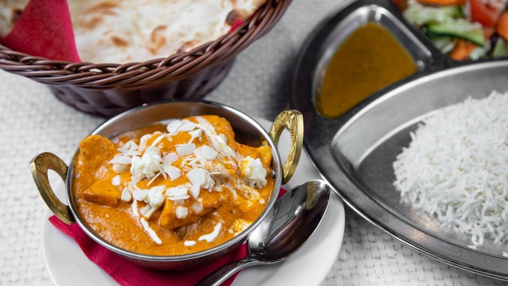 Tandoori uunissa grillattu kanaa (Suomalainen tuore kana), cashewpähkinä, valkosipuli, inkivääri, juustoa malai tomaatti kermakastikkeessa.