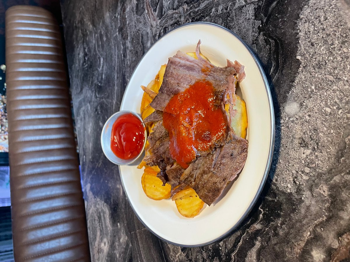 Ruokalistan kieli on suomi. Haluatko kokeilla automaattista käännöstä toiselle kielelle? Käännökset ovat koneen tekemiä, ja niissä on virheitä ja kaikenlaista pientä outoa – mutta saanet kuitenkin jonkin käsityksen annoksista!