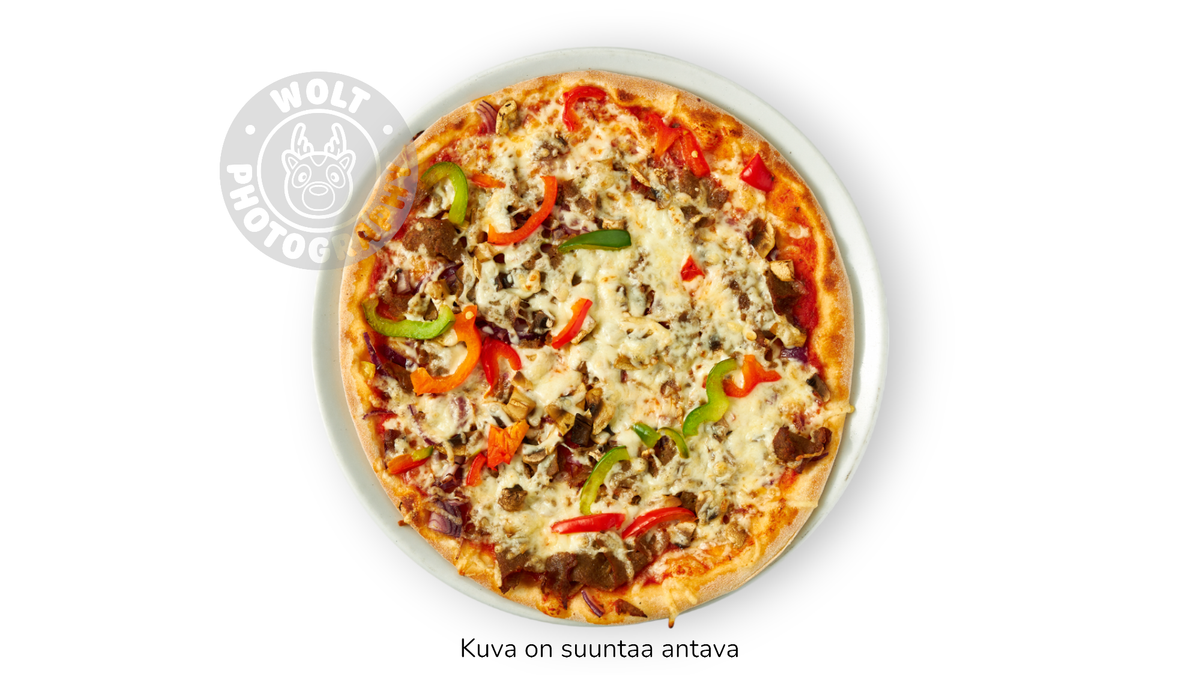 Naudanliha, sipuli, paprika, herkkusieni, mozzarella
