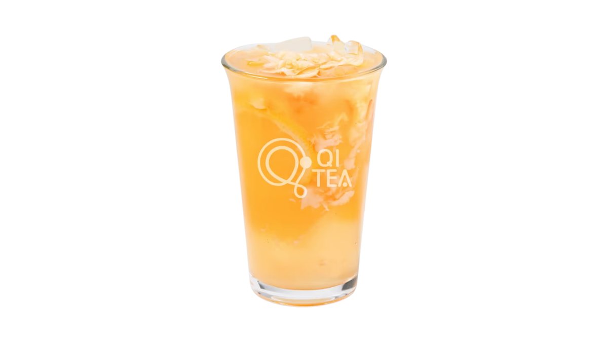 Fragrant osmanthus oolong tea blended with sweet peach flavor for a smooth, floral taste. Served with juicy popping boba.