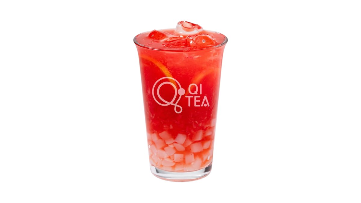 Fragrant fruit tea made with fresh strawberries and a hint of lemon for a bright, refreshing taste. Served with coconut jelly.