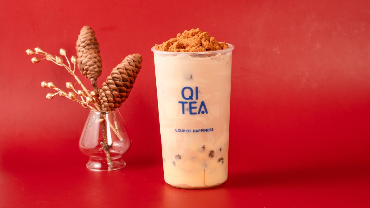 Rich Assam milk tea topped with a layer of creamy crème brûlée foam and caramelized sugar, served with golden tapioca pearls. NOTE: crème brûlée contains dairy ingredients and lactose.