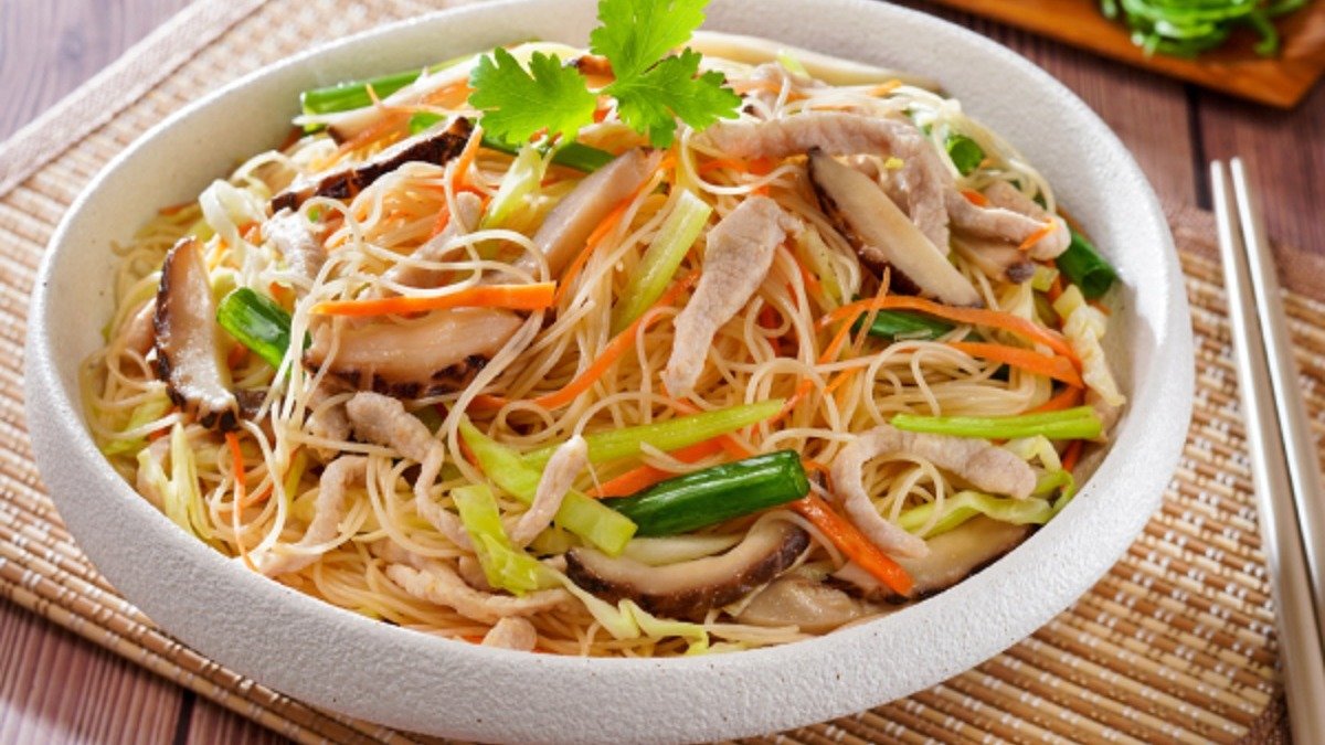 Paistetut riisinuudelit kasviksilla ja kananlihalla鸡肉炒米粉,