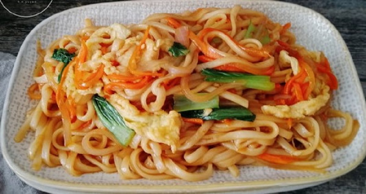Paistetut Udon-nuudelit kasviksilla ja kananlihalla鸡肉炒乌冬面