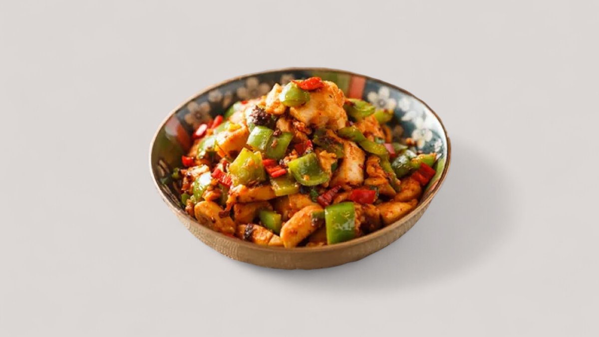 Kana ja chili paparikka woki辣子鸡丁 ja riisi