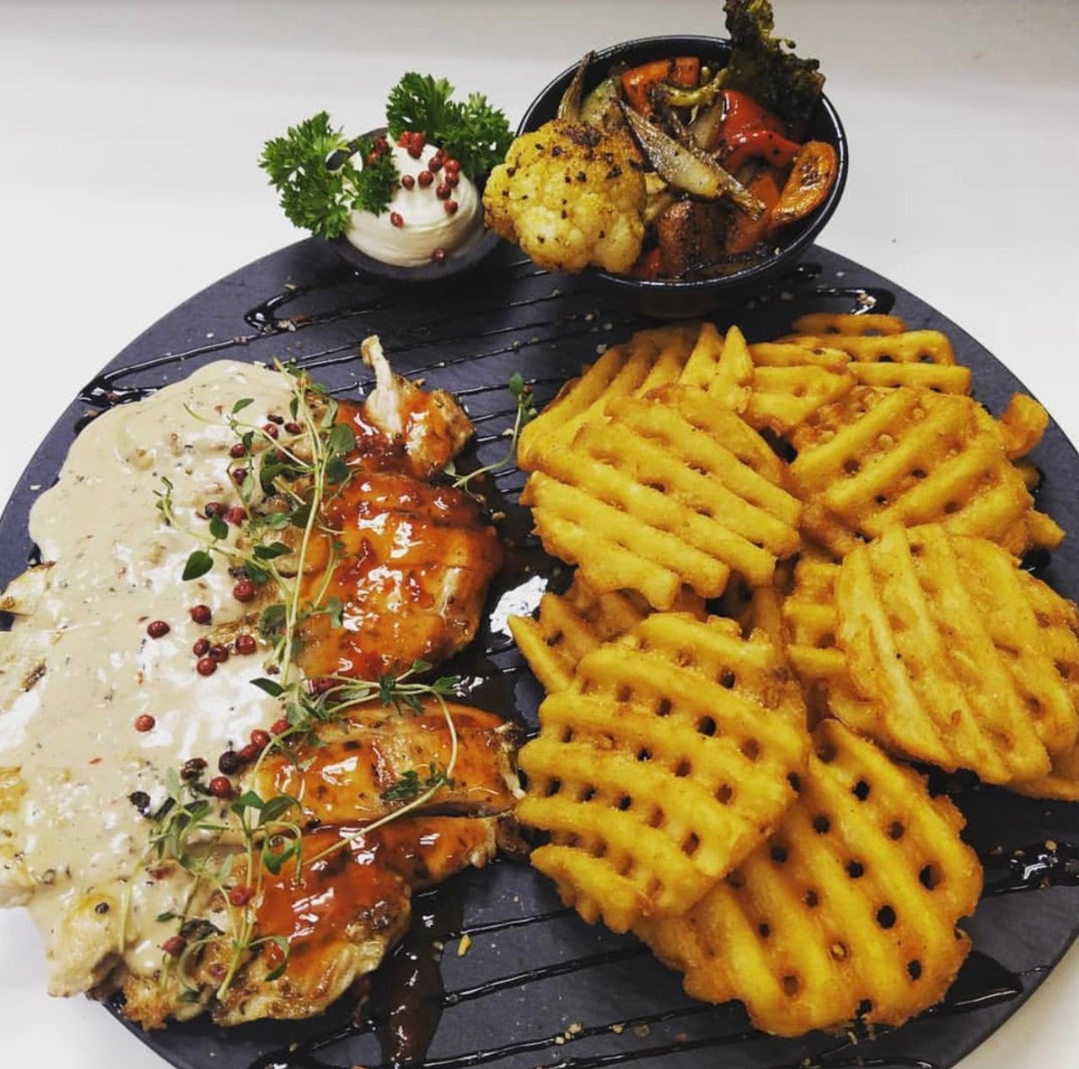 Ruokalistan kieli on suomi. Haluatko kokeilla automaattista käännöstä toiselle kielelle? Käännökset ovat koneen tekemiä, ja niissä on virheitä ja kaikenlaista pientä outoa – mutta saanet kuitenkin jonkin käsityksen annoksista!