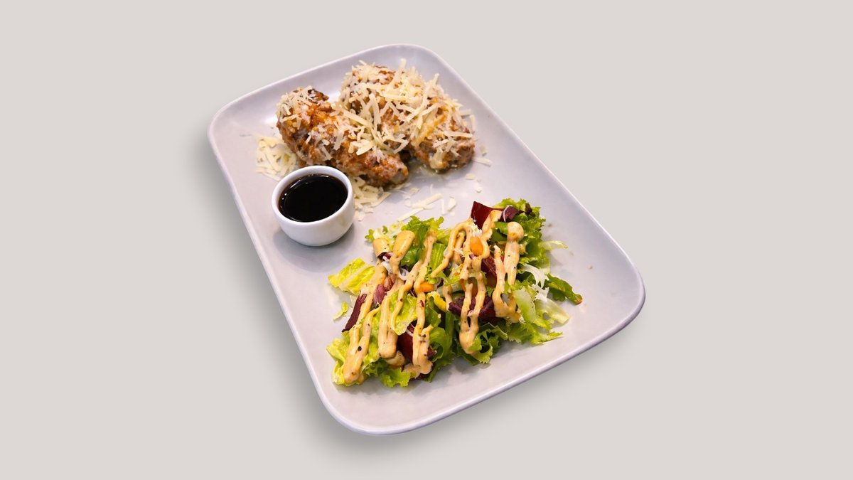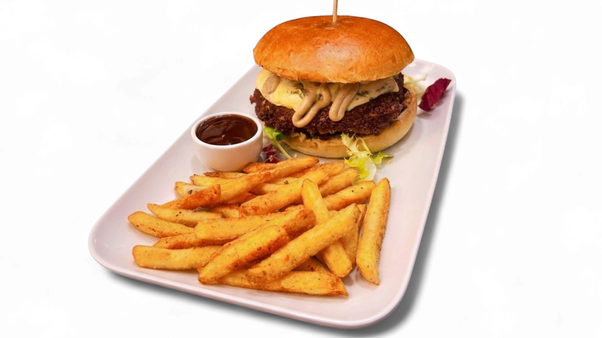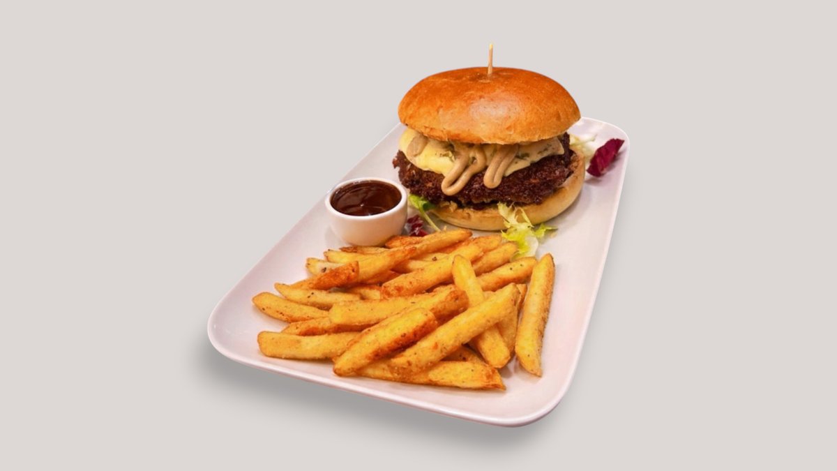 2x (80g) beef patties, sautéed mushroom, Blue cheese, Truffle Mayo, Mixed Leaves.