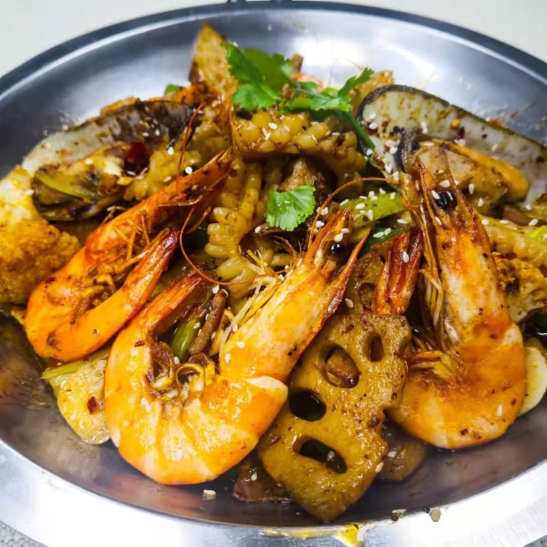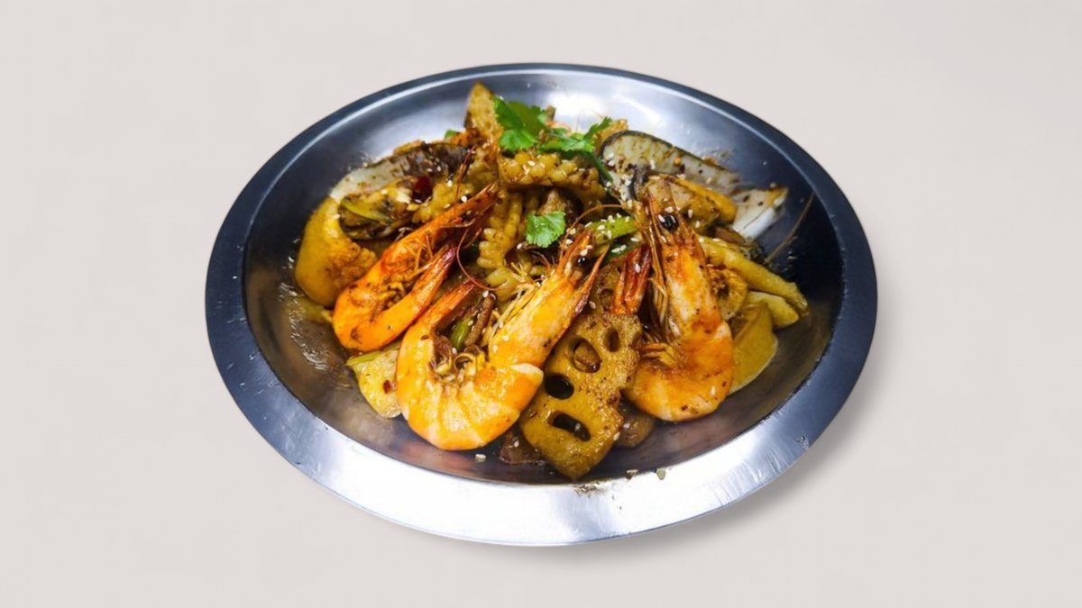 Sichuan tapaan maustettuja grillattuja äyriäisiä Sichuan barbecue flavored seafood mix pot