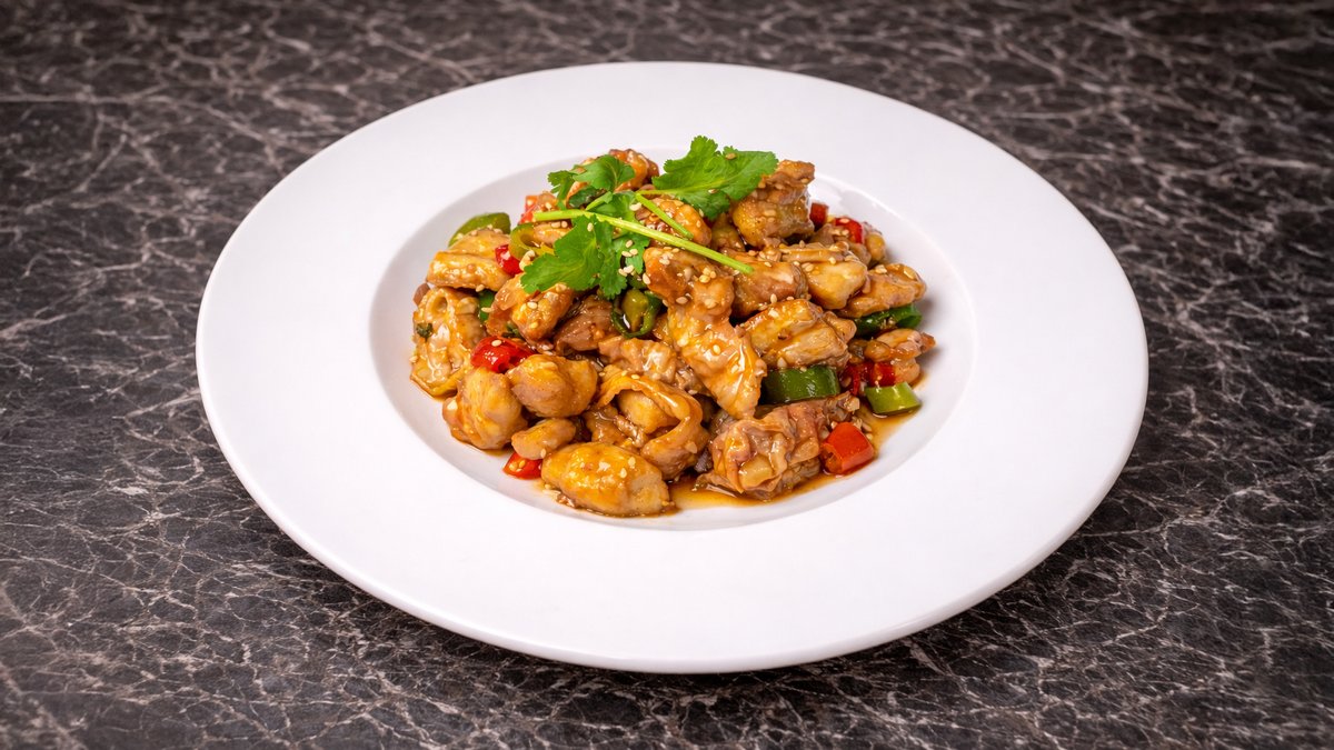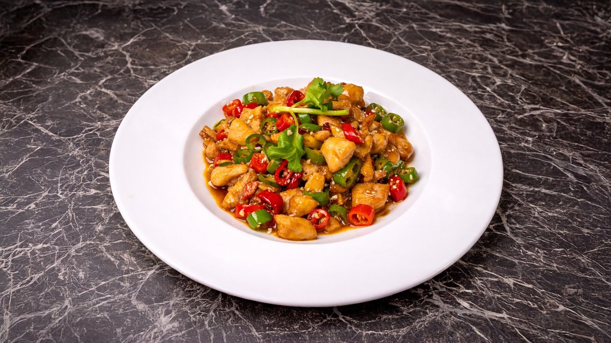 Paistettua kanaa, chiliä ja pähkinöitä