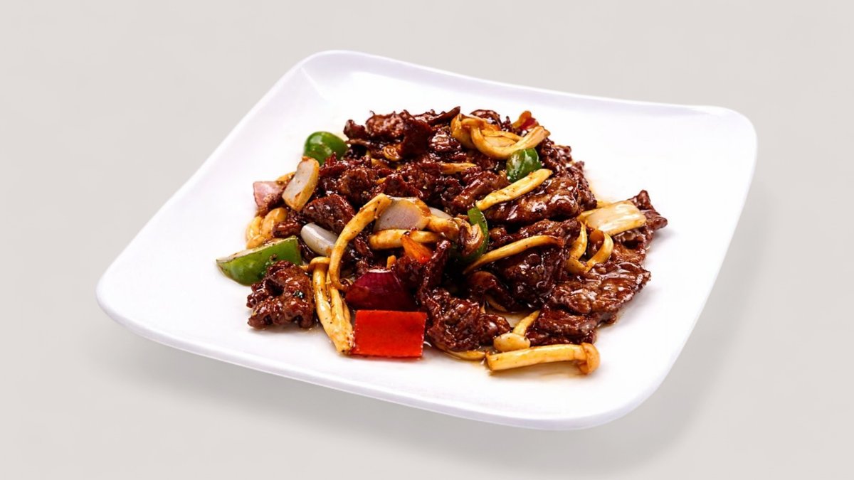 23. 黑椒牛Mustapippurilla maustettua naudanlihaa ja tuoreita sieniä