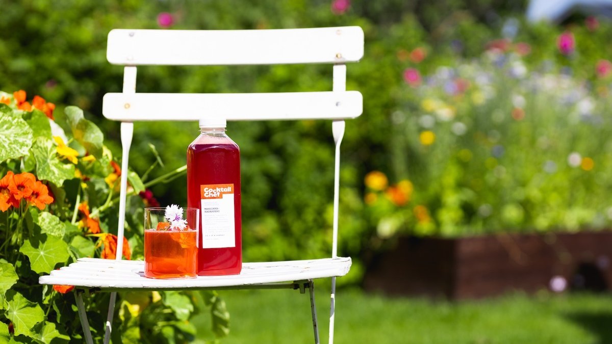 Mansikka, raparperi, seljankukka, vesi, appelsiininkukkavesi, sokeri, sitruunahappo, omenahappo. Ohjeet: 1. 10 cl + 4 cl alkoholi 2. Ravista ilman jäitä 3. Kaada jäiden päälle