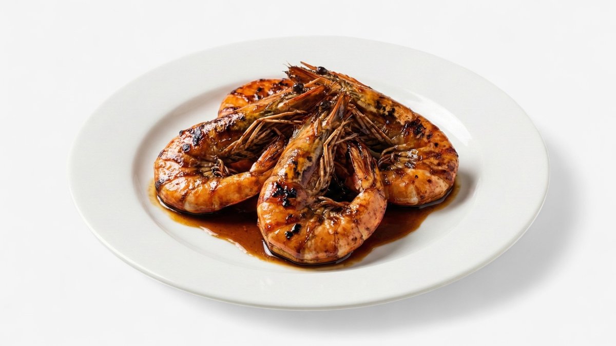 (jättiravut tarjoillaan kuorineen) Wok king prawns in ketchup (prawn with shells)