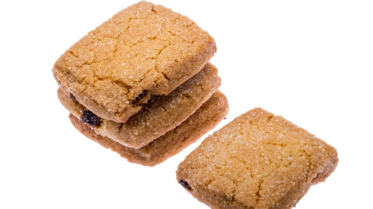 Vehnäjauho, voi, sokeri, rusina, kananmuna, leivinjauhe, karvasmanteliaromi