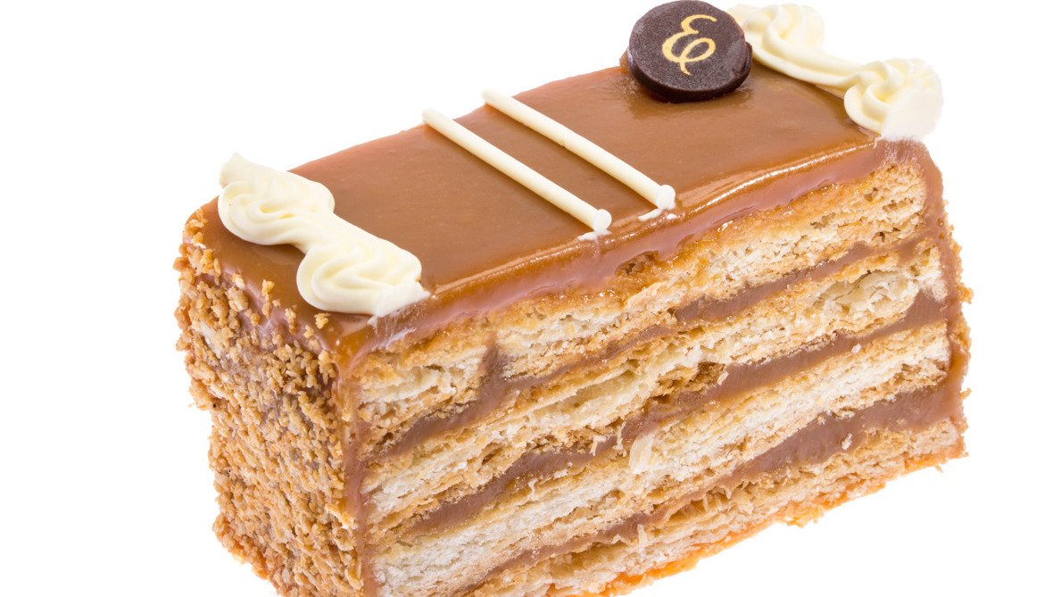 Tuhatlehtileivos koostuu kerroksittain ladotuista rapeaksi paistetuista voitaikinalevyistä, välissä on Ekbergillä tehtyä kinuskia.