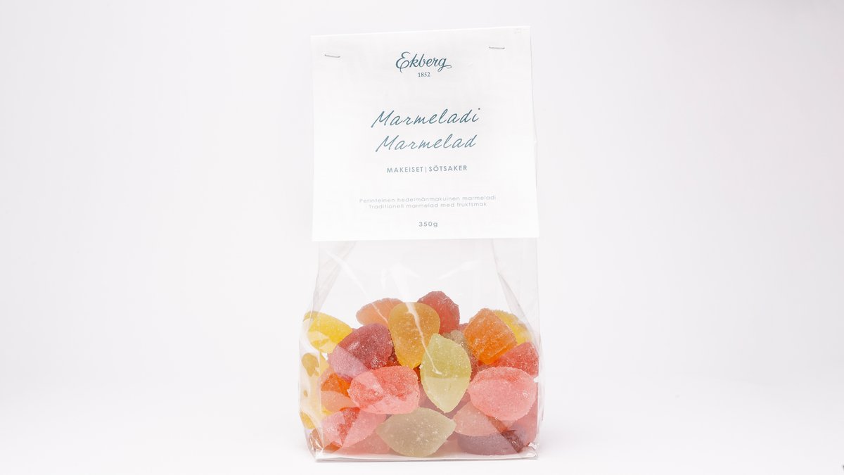 Sokeri, glukoosisiirappi, vesi, hyytelöintiaine, pektiini, hapetusaine, sitruunahappo, aromit, värjäävät kasviuutteet (porkkana, musta porkkana, saflori, kirsikka, hibiskus, sitruuna, spirulina, kurpitsa)