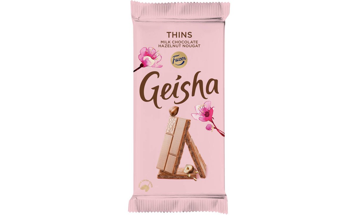 Perinteinen latte maustettuna Geisha-konvehdilla. Sis. pähkinää ja laktoosia.