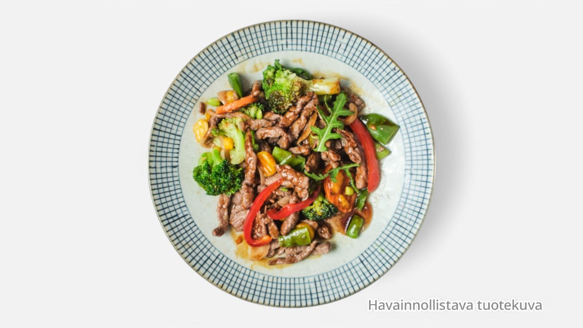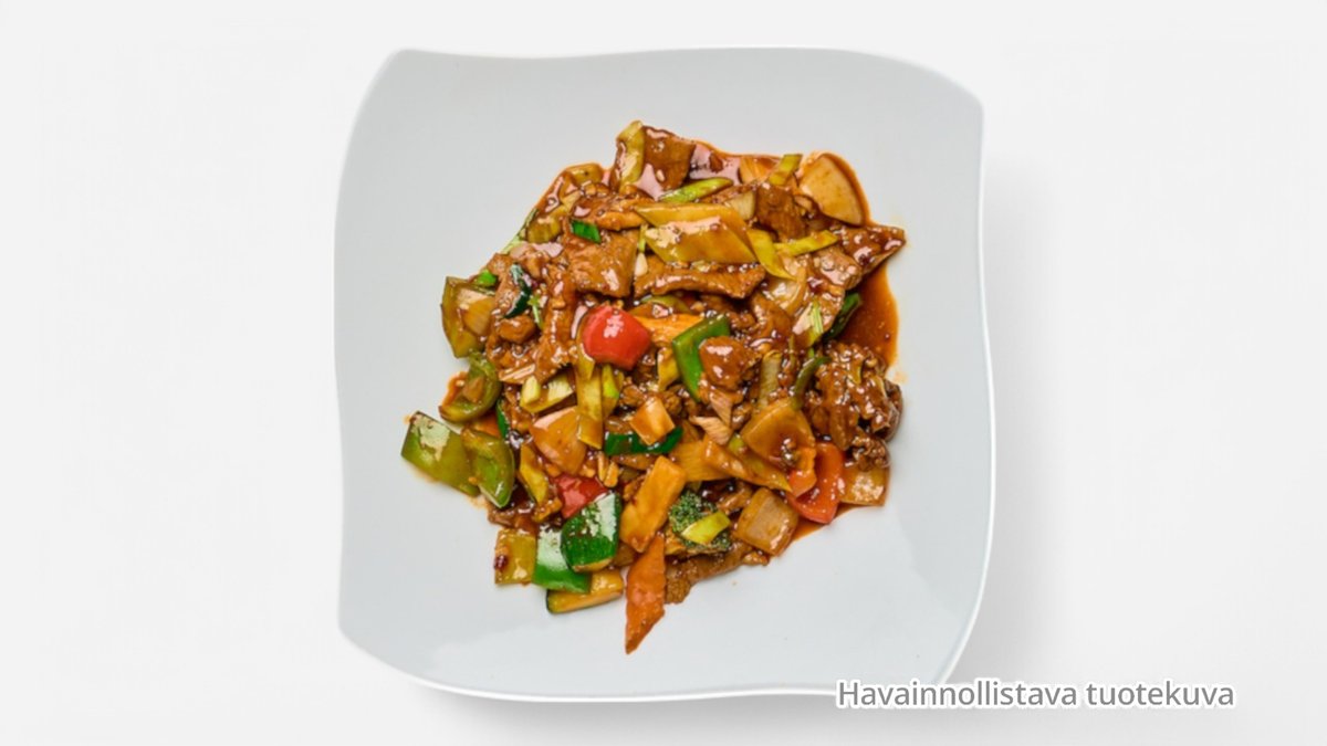 Naudanlihaa ja kasviksia chili-valkosipulikastikkeessa