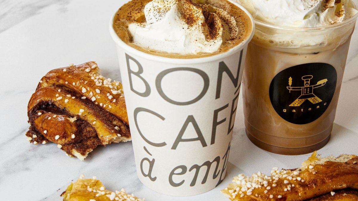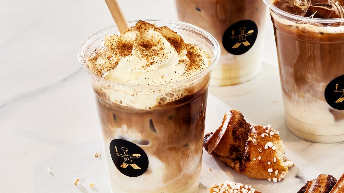 Herkullinen korvapuustin makuiset kahvijuoma, jossa sisältävät kanelisiirappia, kardemummaa, valitsemasi maito, espressoa ja kermavaahtoa.