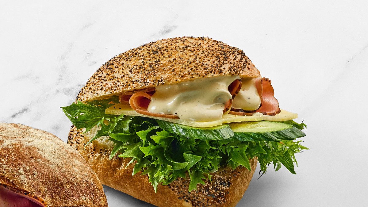 Täytetty sämpylä kinkku, juusto & dijon majo