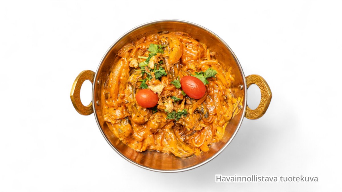 Tandooriuunissa paistettua marinoitua kanaa kermaisessa tomaatti - sipuli - cashewpähkinä - valkosipulikastikkeessa