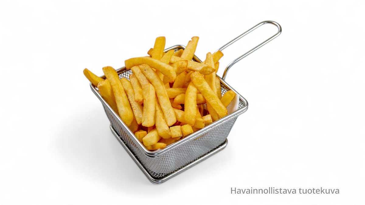 Kananugetteja, ranskalaisia ja chili- tai barbequekastiketta