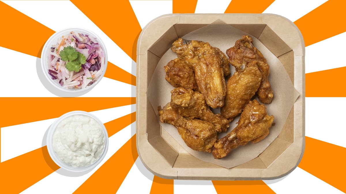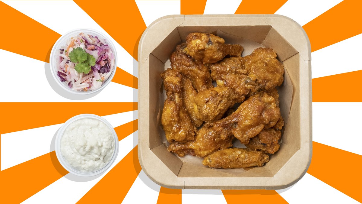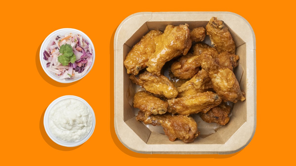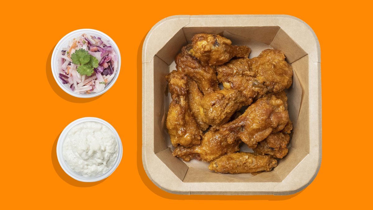 ⚠️ NOTICE ⚠️ Our wings ARE NOT SWIMMING in sauce – because we like 'em crispy! JokuRoti Wings 16pcs + soft drink 0,33L, side salad, french fries, selected dip.