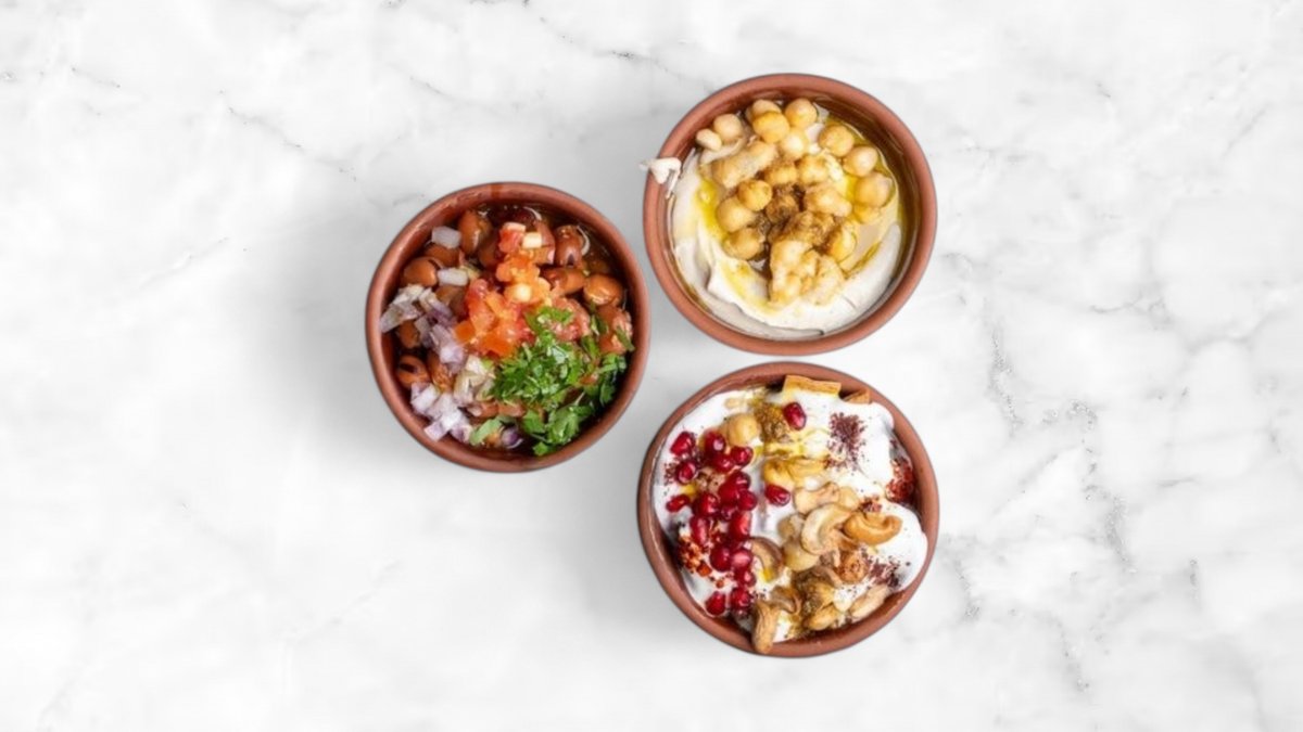 Three varieties of traditional fattah: chickpeas fattah, foul mudammas, balila