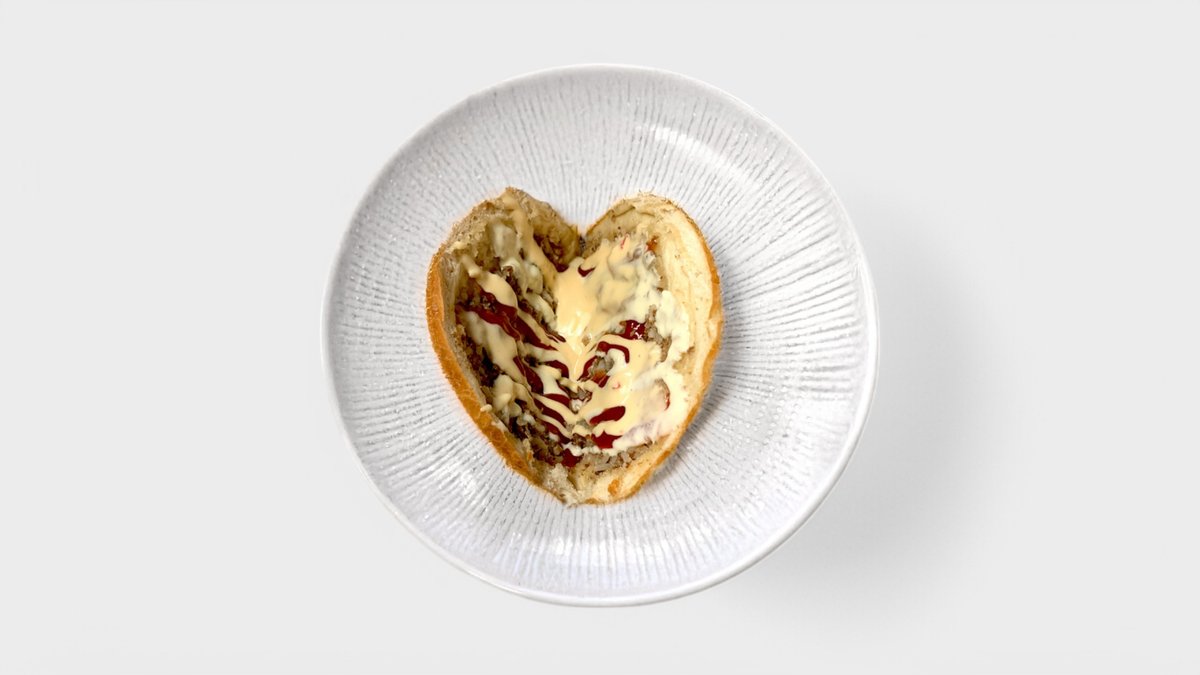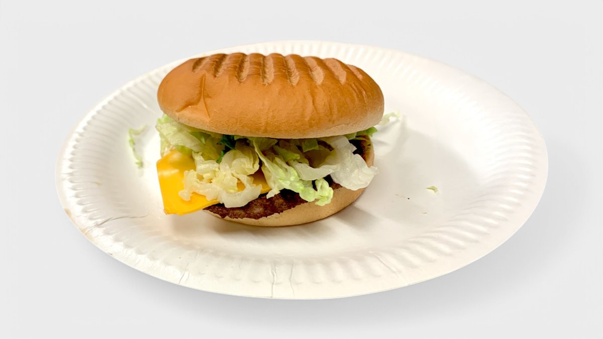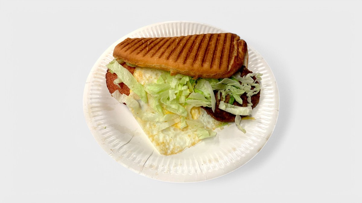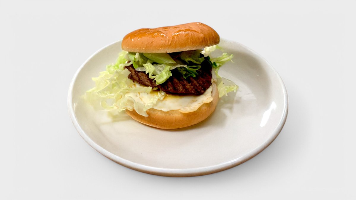 Sämpylä, pihvi, naudanliha 45g, paistettu kananmuna, salaatti sekä salaatinkastike