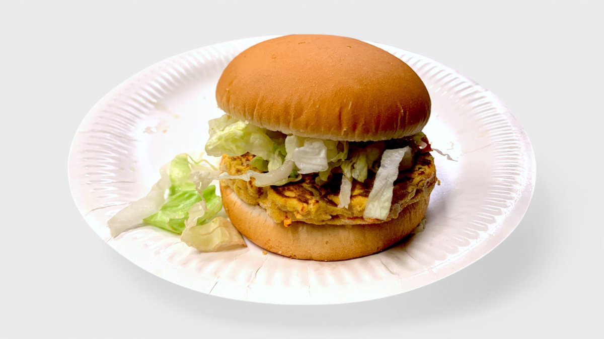 Sämpylä, kasvispihvi 65g, salaatti sekä kastike