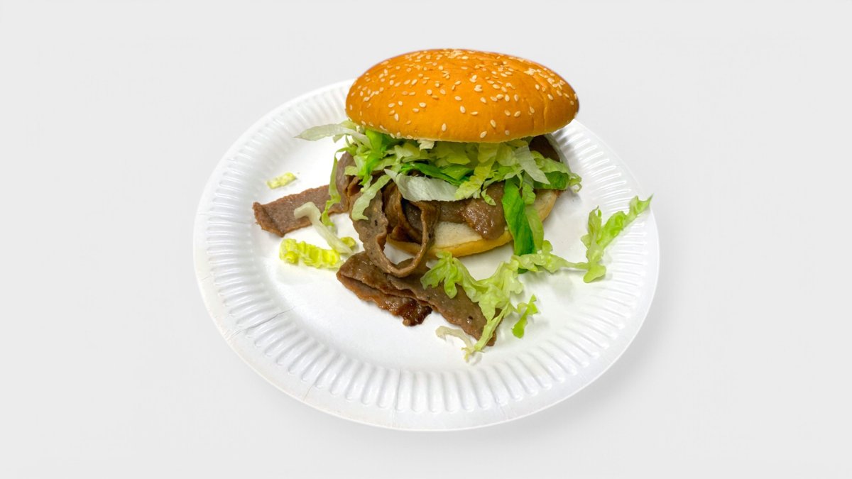 Sämpylä, naudanlihapihvi 45g, salaatti sekä salaatinkastike